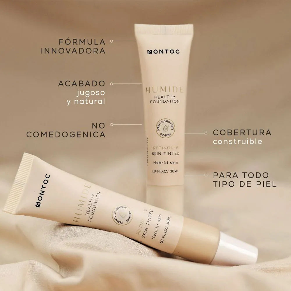 La Base Humide Montoc está diseñada para brindar una piel radiante, fresca y perfectamente unificada. Su fórmula ligera con acabado húmedo (glow) hidrata profundamente mientras proporciona una cobertura media modulable que no se siente pesada. Ideal para pieles normales a secas, deja un efecto jugoso, saludable y natural. Perfecta para maquillajes de día, editoriales o pieles que buscan ese brillo natural sin exceso.